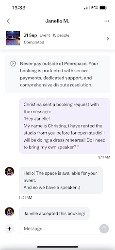 Booked this space for a private rental two months in advance of my booking date for a dance rehearsal and confirmed with the studio owner there were no classes scheduled at the time i booked. On the day of my booking, there was a class going on during my rental time meaning the owner, Janelle, had double booked the studio. It took several calls to the studio owner to get a response in which she told me “ I’m sorry I don’t really check peerspace for private rentals—I really just prioritize classes. I’m just a young girl trying to run a studio”. She told me she would refund me for the inconvenience over a week ago—I have yet to be refunded and she has not responded to any communication efforts initiated by me in over a week. Very unprofessional and frustrating experience. Do not book private rentals here. Also the owner gave me a negative review even though she never gave...