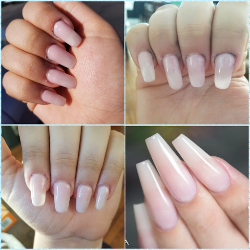 I was recommended to this place by a girl in my building at work. Her nails looked beautiful and clean. They were what I was looking at trying to get done. After how highly she spoke of them I made my appointment and even took my man with me so he could get his feet pampered. My visit ended up being bittersweet. We got the "royal spa pedicure" or something like that its was the second most expensive spa pedicure on their list. It was WONDERFUL! The technicians were a pleasure to work with and were a joy to have conversation with. Yes the conversations were short but when you bring in a man with ticklish arches and it comes to pumicing his soles...good times. My technician checked with me for every part of the treatment amongst the temperature of the products used, if anything was uncomfortable, etc. The most I can say is that my man almost fell asleep and he had smooth feet for WEEKS (he wears boots in a labor intensive job so ya I'm impressed) my toes looked great and I would go back to that specific technician. My problem was with my tech for my manicure...she was..unpleasant to say the least. This was not my first manicure nor my first set of acrylics.. she kept yanking my hand and twisting my fingers. She kept stabbing me with her own nails to the point of almost bleeding. She trimmed my cuticles to the point of several fingers bleeding... please understand I was very vocal about my discomfort during this appointment. I asked for a different tech and was told no with a sneer. I tried pulling my hands away several times but she would continuously grab my forearm and yank my hand back...the poor girl working on my feet couldn't do anything about it. She tried to speak to the girl doing my nails about something and she was immediatly shut down. Long story short, I got close to what I asked for. Each nail was a different length, the corresponding nail on the opposite hand did not match the length of the other. Nails were crooked and slightly different shapes. And to finish with my pointer finger got infected and swelled up within 24 hours. I got antibiotics and ended up losing the entire nail within a week. I say my visits bittersweet because I would say it was just this specific tech that ruined my experience. I wish I would have remembered her name but if I go back and see her there I will update with her name. Pics attached. What I asked for vs what I got and my...
