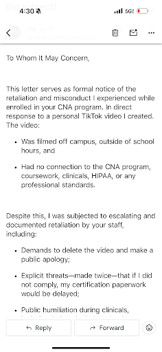 Instead of addressing things with professionalism, the program director and staff retaliated against me, spread false accusations, and ultimately forced me out of the program. Not because of my academic performance, not because of anything unethical I didâbut because of personal bias, control, and power-tripping behavior from people who should not be in leadership positions.