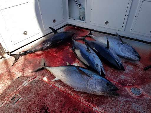 This trip we were on 50# class bluefin from sunup to sundown, but despite them being SUPER picky, boated 7 fish via 20# test and hour long battles. Days like this where the fishing is tough is when this crew really stands out from the rest. Co-workers and I are super stoked, and will be booking another...