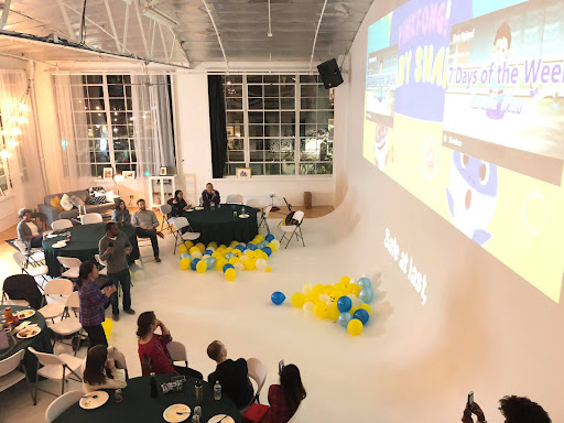 So, this studio has one gigantic white wall which we used for a big screen as a projector screen, and the two walls attached with ceiling tall/ massive windows. We started the shower in the evening, so we could still enjoy ample of the sunlight and as the party went into the night, we could enjoy the pictures on this gigantic screen. There is a "selfie booth" in one corner, so guests could take selfies and these pictures were hocked to the big screen. They had good quality microphones as well so we enjoyed Karaoke as well! Food were...