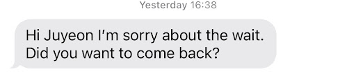 The message asking me if I wanted to come back to get my nails done again came at 4:38. So if I had kept waiting, I would’ve waited 40 minutes? Even though my appointment was at 4:00?