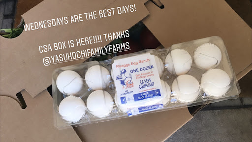 Produce: 5 stars Variety: 5 stars Service: 5 stars Prior to Yasukochi Family Farms CSA boxes, I didn't keep or eat much fresh produce. My produce consumption was primarily frozen vegetables from the warehouse store that kept permanent space in my freezer. Quarantine was - now more than ever - the time to learn my vegetables, preparation and eating them in ways I have never done before. The variety in the boxes presented a good balance between “the comfort of the familiar” and “the challenge of the unknown-to-me” fruits and vegetables that beckoned me to open up websites with recipes so that I may find what to do with an unfamiliar - or even unknown -vegetable. The weekly boxes were a delight to receive. All produce were at peak of ripeness and freshness. Husband would take bites of the items throughout the week and smile back while saying that the fruit or vegetable tasted sweet. This brought the desire and success in making my own salsa and many vegetarian recipes and sauces for the very first time. From my pictures you can see the variety. Boxes are never exactly the same again as the week before as they are based on what is ready for picking from their farm (and occasionally from other area farms) but their sustainable and ethical farmed produce was always delivered with variety and plenty. My boxes included staples such as carrots and potatoes as well as not common to me such as dill, sage, and artichoke hearts. Fruit such as peaches, nectarines, plums and strawberries was a usual party of the box. There were weeks of giant heirloom tomatoes and fruit I’ve never purchased before such as melon and honeydew. If you ever want to ensure particular items come, you can ask or add to your box (such as more ears of corn or eggs from Fluegge Egg Ranch) via their website ordering system. As far as the delivery people I saw during drop off, they were polite and masked and if I was not home or didn’t hear the doorbell, I would find my box in the shade or covered when possible. The regular box weekly is plenty for a family of 4 and for those who really love fresh produce or looking to split with a friend or neighbor, I would recommend the jumbo box because for $10 more, you can still have plenty delivered even after sharing a box. After a month of giving it a shot, I will be continuing my subscription and would highly recommend Yasukochi Family Farms as one to support via via CSA (community supported agriculture) box delivery. The pictures I am attaching shows the contents of their Jumbo Box (currently $35) and the add-on of a dozen eggs from Fluegge Egg Ranch.