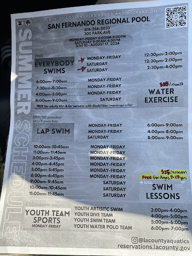 Read moreThe San Fernando Regional Pool is an amazing resource in our community, my daughters take swimming clases here and I am very pleased with their progress, also classes are affordable. Life guards are very professional and practice an affective rotation, preventing fatigue and ensuring continuous vigilance. Like in any place, some lifeguards and instructors have better customer service skills - but overall they are great. I like how strict they are about keeping this site clean, and how their focus is ensuring safety. This pool is perfect for taking classes and excersicing - it's serious business here. It's not a place to party like some people are used to, have you seen how terrible and dirty pools that allow that are? Yep, not here. San Fernando Regional Pool is truly a gem in our community and for those who appreciate a place that offer quality on everything they...