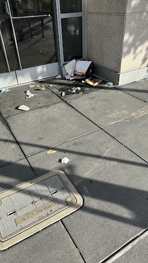 They replaced security guards last April with a sign that just says guard on patrol, only reinstating guards when someone was murdered on our block in July. Even then, security leaves at 9pm and I’ve seen people camped outside in the doorway lighting fires overnight.