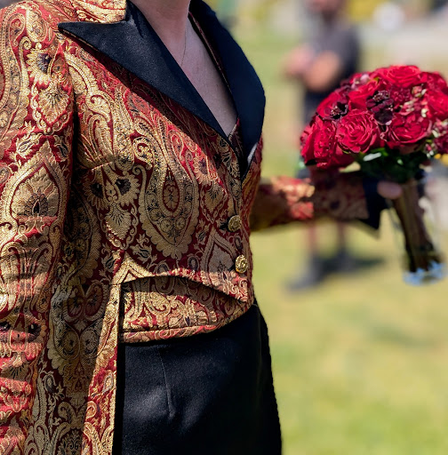 Working with Suzanne Hanley of Atelier des Modistes has been awesome. I was introduced to Suzanne because I had a vision that needed expert craftsmanship, and she is an expert in couture fashion. Suzanne took my vision into design and composed an ensemble for my wedding that far surpassed my greatest hopes and imaginings. An exquisite corset and skirt, brought together by the classiest tailcoat I've ever seen - even through all the research I had done. She listened to every word I said and studied every drawing I made. She guided me through multiple fittings and carefully studied the way I responded to her ideas. And in the end she got everything right.