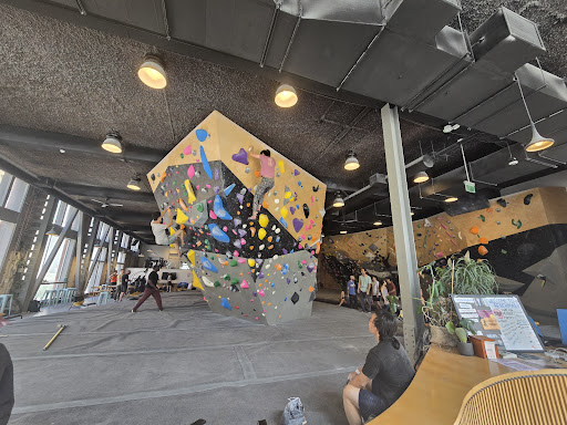 Read moreOne of my friends climbs so we stepped in to check this new place out . If I can give them 10 stars I would !! Starting from the friendly faces in the front to such a fine clean interior design to cool refreshments ..But the best part of it is how very friendly and educating some of the staff is . As someone who is clearly not an avid climber one of the girls- Linda was so nice and guided us throughevery step from beghiner level showed us tricks and encourage us! Didn't get a chance to take shot of the changing rooms , but they have showers and changing rooms lockers separtae bathrooms/ gender neutral ! there is also a gym !!the best part is that we got confused refreshments 😁 at the end of the climbing and we got to hangout and play board games . I'm definitely...