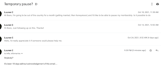 Read moreAt some point I'll come back and provide a detailed review of the instructors (most are excellent, and I do love coming here) but I'm so frustrated by the service. They don't pick up the phone, there's no way to leave a voicemail, and they don't answer emails. The front desk staff are sweet, but they also don't have any answers, and you get a lot of, "email us, someone will get back to you!".... :/. It's been 18 days and counting -- not even an acknowledgment. (As a comparison point, you can text...