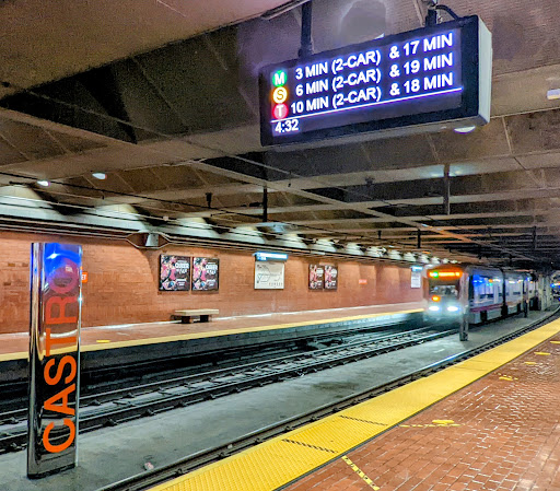 Castro Station has been clean every time I've been there. The faregate level stretches over the rails, so it's a nice place to be if you're a transit enthusiast and want to watch some LRVs (light rail vehicles). The boarding platforms are about a block long and have a few benches. There are also screens that tell you when the next trains will arrive. Outside the station is a giant pride flag and the Harvey Milk Plaza which has some information and photos. This station is within walking distance to the Castro Theatre and...
