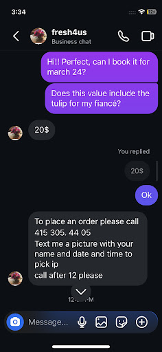 Read moreThe worst service ever! I quoted my bouquet two weeks before my wedding by Instagram, I informed them what I wanted and by when I wanted it, they told me I had to call the next day after 12, when I called to reserve my bouquet they told me they were no longer taking orders, to call the next week, I called again according to the directions they gave me and surprise!!!! They tell me in a rude way that they can't do my bouquet because there is no time, besides they are not working that day and not on the weekend either... why didn't they tell me that from the day I quoted the bouquet and told them the date of the wedding? The lack of communication...
