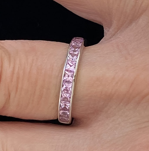 In the ensuing years, Margie has been readily available to help us polish and maintain the ring. On a recent visit to her showroom, my wife could not resist purchasing a new piece from the Goldberry collection. Over a period of several weeks, Margie helped us sort through a wide range of options. Ultimately, we selected a stunning lilac princess sapphire ring (see picture).