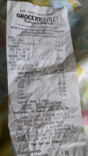 I've been shopping at this store since 2015 faithfully. Nearly every other day. I grew up in Visitation Valley when this store used to be a Mac Frugal's (Big Lots former name) and then later became a statue retailer and showroom. Visitation Valley had been a food desert for years till Grocery Outlet showed up. I'd really have to rethink my relationship with this store from now on.