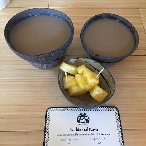 Pretty cool place. Really beautiful inside with a large, L-shaped bar. There's some sort of woke shrine with crystals and water fountains to your left. It's like if Rusted Root was a place this would be it. I was greeted by a glowing, attractive kava tender (?) who asked me if this was my first time there which I said yes and she said you get a free shell (like small coconut shell) of traditional kava which I was then told you drink like a shot. I wanted to get blitzed so I ordered the Hawaiian as well. She brought them over to me and told me to think good thoughts and insisted I say, "Bula!" loudly first before drinking which I, of course, did. I think it's the Polynesian equivalent of cheers. I heard her going over to other newbies for which she had the same spiel. Other people were already in the know there. I drank the traditional first. It tastes really bad so they give you pineapple chunks for chasers. You can feel a numbing sensation on your lips and mouth right away and start to get a nice, fuzzy feeling. I began on the Hawaii which you sip like a cocktail. It's delicious! It's got coconut milk and maybe mango in it. It's creamy and tastes like a fruity frozen drink minus the alcohol. The people all seemed really nice. It's definitely on the hippie, crunchy side. If that's your thing there's a health food next door. Overall, a great experience and would definitely go back if I...