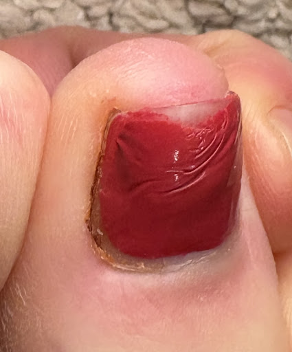 Photos below taken of my fresh, same-day-of pedicure (entry hall is where I saw how it was ruined by poor Wrap and oil application, and later I noticed a brown strip on the crease and when I held the toe I saw all the dried blood mixed with prep powder along where she cut me). What a waste of time and $ and my toe...