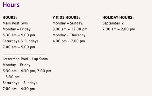 I was aware that today, being Labor Day, I had to make sure I knew their schedule. The website said "Holiday Hours September 2: 2pm", I was surprised right away, because it didn't specify anything about a different schedule for the pool; it was strange because for most YMCA's locations, pools tend to close 15-30 minutes earlier than the rest of the facilities. They have listed on the website the hours both for the pool and the gym; so since for Labor Day it only said 2 pm; I didn't think much of it.