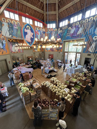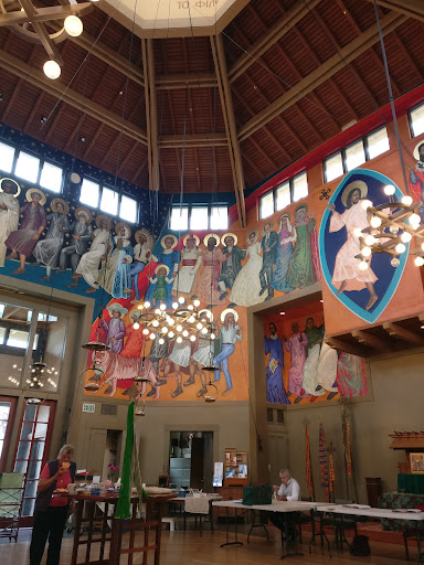 There is a 360° mural up high that is incredibly beautiful, colorful and interesting! It's a collection of historic religious and "social"saints done in a Depression Era style. But wait, there's more! The church has included people from their history, ancient and living, making them their own saints, miracle not required. The mural also features modern historical leaders who made our world better in a saintly way. It's fun and interesting to try to identify all of them and their accomplishments. If you need help, there is a booklet that identifies all of them with pictures. Definitely worth a trip to...