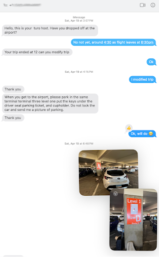 Attempts to reach Emmanuel or Turo? Crickets. I ended up leaving the car in a garage, Finally I got a hold of Turo (as instructed by Turo after they couldnât reach him either) so I wouldnât miss my flight. Then, in the middle of the night, Emmanuel called and texted meâdrunk, angry, and confused. I tried to help him get treatment. Turo? Not so much.