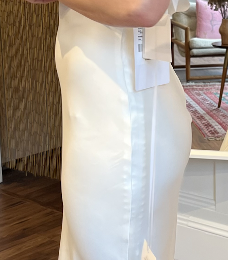 The owner has implied that this is probably because of me gaining weight, but looking back at our records the store said I was between a size 6 and 8. On my order form they submitted a size 6, this very same order form says "We highly recommend sizing up when your measurements fall in between sizes as you can always take in the dress during alterations," and it appears they failed to follow their own advice. To be clear, my clothes all fit the same and my size has not changed for some 10 years.