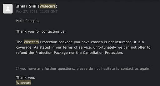 At this point, I have received a refund, apologies, and a promise that Wisecars will work on improving their communication practices. That's fine for me at this point, but I hope that others who have similar experiences will receive the...