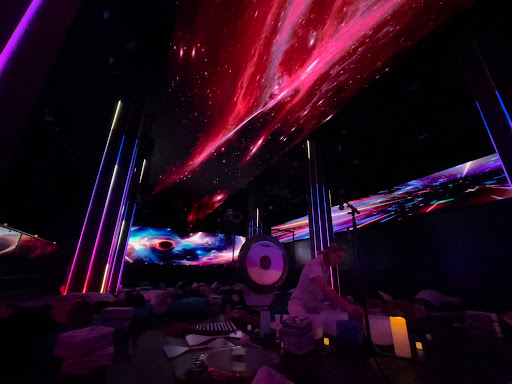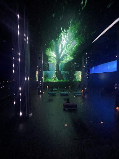 I recently had the pleasure of attending a yoga class at Zenses Immersive Yoga. The ambiance was truly extraordinary, with a state-of-the-art sound system and mesmerizing visuals that transported me to another dimension. The space itself was impeccably clean and well-equipped with lockers, a nice seating area, and complimentary herbal tea. They even provide yoga mats and props, making it incredibly convenient for newcomers.