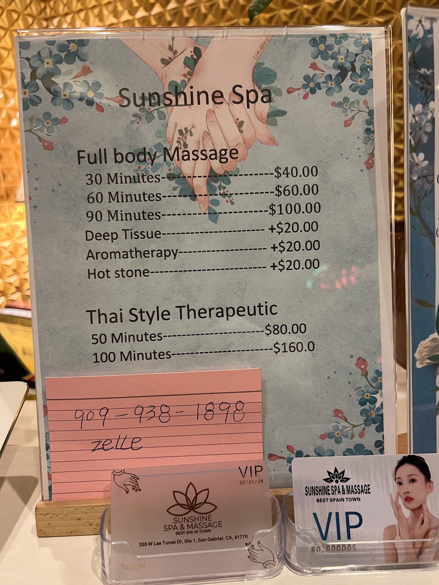Terrible massage. Booked an hour for 2 people and prepaid at the front with the boss lady. No couples room, not a huge deal. Massage starts off too light, does improve, but not by much. My masseuse leaves the room about 30 minutes in. It took a while for her to come back. Then, I realize someone different from my original masseuse is massaging me. Not a big deal, new one has better pressure and actuals knows what she's doing. After 10 minutes, she leaves, and I'm laying like a dead fish again for a long time again. Finally, they return, but I'm sure it's a different person again. The rest of the massage ends rather too quickly. I go out and wait for my wife to finish. Between the early end and multiple stops, I got about 35 minutes of massage time. My wife had a similar situation! The staff never communicated to us about what was happening and when confronted, boss lady tried to tell us we were requesting different masseuse. When pressed more, she raises a VIP card and says she normally books return customer only. She didn't know who we were. Pretty odd thing to say to customers that called ahead and paid before. Just because a "VIP" walked in 30 minutes after us doesn't mean it's right to rotate people around and waste our time and money. Poor management. Poor communication. Poor business. This place seems sketch. 0 stars for a business that tries to gaslight...