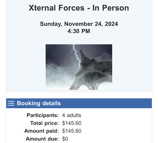 Then suddenly he opens the door and says times up, there's no time to go over the answers. No explanation why, he snaps a picture of us, says goodnight, and then ducks away. We look at our phones and it's 12 min over the end time. I'm not sure why they ended us late given we arrived 15-20 min early. Part of me feels like he forgot about us and maybe forgot to give us walkie talkies too? Either way it left us feeling unsatisfied, like we were bumbling around for an hour for no reason, and then told to leave without any real resolution of the game. It was such a strange experience and definitely not worth the money. We also suspected that some of the clues (ie the tile puzzle) were not arranged correctly, but we could be wrong.. who knows though, they never gave us...