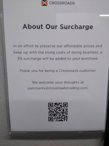 NOTE: They now slap a 3% charge on top of their prices, with the rather hilarious explanation being that they're doing it in order to keep their prices down. Uh, if your customers are paying it, I would suggest your surcharge gambit is a failure LOL 😂.