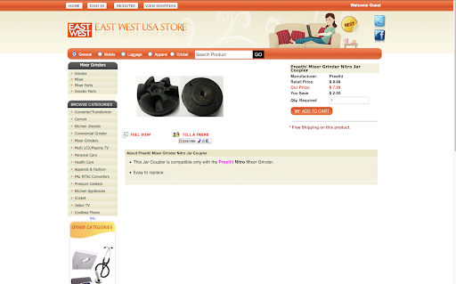 Our Preeti Nitro mixer rubber coupler (aka rubber bush) has gone bad. Checked online, available in āEast West USA storeā (EW) and also on Amazon but with shipping costs. I tried to purchase is online via EW store but PayPal doesnāt seems to work (likely the EW site is not secure enough) for payment.