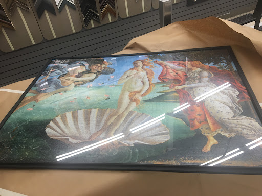 Now, I probably should've left because I can always find something at a craft store, but I decided just to "browse" & "browsed" myself right over to the Christmas Santas. Half price, I couldn't resist! Then I continued "browsing." I have two clients who want me to do an art wall for them, so I decided to get inspired in the frames. I found PLENTY of ideas (for my clients & myself) & even spoke to a salesgirl about a custom-frame job.