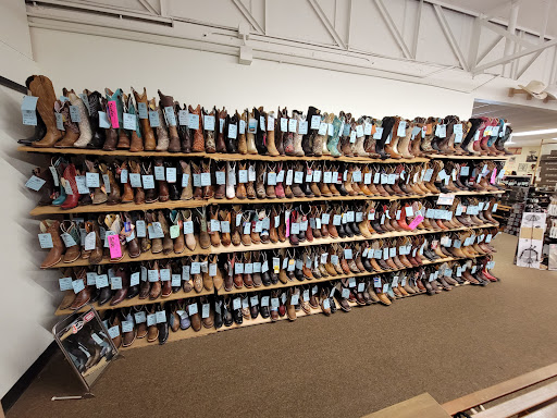 Great selection and service! Our family of 4 is headed to a dude ranch, and wanted appropriate boots for riding. The gentleman working the shop gave us some pointers on what to look for and what our various options were, and was there for us if we had questions, but also gave us ample time to browse around unhurried. The boot inventory is focused on western, "Cowboy" style boots, but has others, too - my teen & pre-teen daughters aren't particularly into the western look, but ended up finding boots they were happy with. My wife and I were willing to go for a full-on cowboy boot, and had a lot to choose from in our sizes, from simple to fancy. We both managed to find nice boots that fit comfortably and looked good. While the gentleman was ringing up our purchase, he noticed a flaw we hadn't seen with one of the boots, and proactively adjusted the price downwards for us.