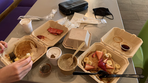 Besides those notes, the food is very tasty given the price tags (surprisingly low!). A meal for me and my wife was about $15 to share delicious oatmeal, have a scramble sandwich for her, and gluten free pancakes for me. They have fruit and nutella options to top the pancakes and french bread, and they have multi-grain and sourdough options for the sandwich type bread and french bread.