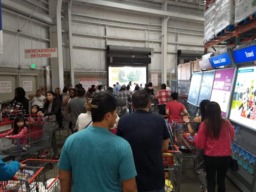 We visited this Costco, only to see that the line for the Costco Gas Station adjacent to the warehouse was long and slow to a crawl. So my father (the cardholder) briefly parked the car, brought my family and me to the front, and door security let us in and witnessed my father and exit to enter the line for gas. During the time after, my family and I were able to shop for items, pay for our items (by then my father had finished purchasing gas from Costco's Gas Station, and had sent in my sister to give his membership card to us), and even have our receipt checked at the exit without any apparent issues.