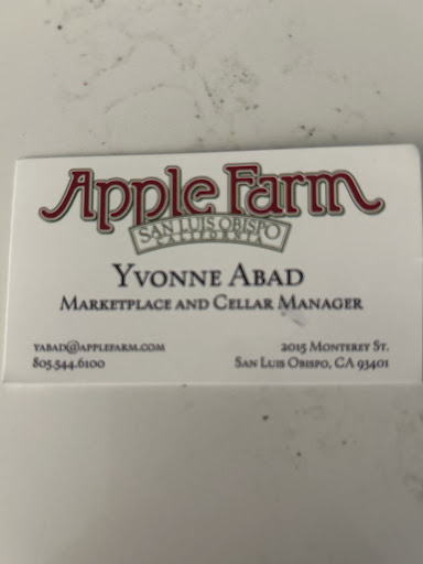 Read moreCouldn’t be happier that I wondered into the Apple Farm Cellar looking for where to check in at the Apple Farm Inn. I was met with Yvonne who gave me the warmest welcome… and some lovely wines to taste. She was lovely to chat to- her passion for the local area and Apple Farm was evident and she was genuinely caring. She made me immediately comfortable and I was happy and excited to be staying here. I’m hoping to be back in SLO next month and if so, I’ll be popping in to say hi! Thanks, Yvonne, and everyone else at the Apple Valley Inn. It’s an adorable place to stay and I felt...