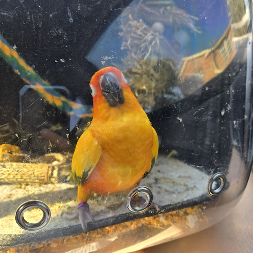 Picture of the contained bird in question. I understand pet policy but I can't for the life of me understand rudeness let alone when I'm here to make a sizeable purchase, y'all need to rethink the customer service over there, Round Rock and Live Oak don't treat...