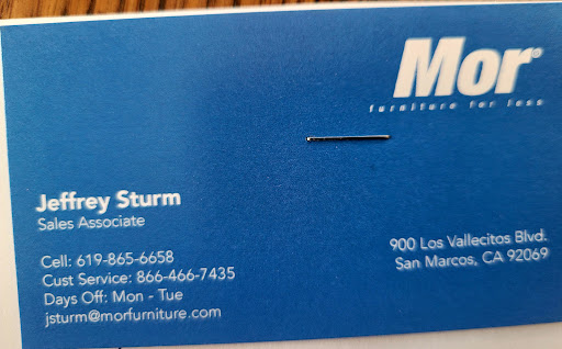 Read moreI recently purchased a couch from Mor Furniture for Less in San Marcos, From start to finish, the process was smooth, efficient, and ultimately saved me a significant amount of money. The moment I walked into the store, I was greeted by friendly and knowledgeable staff who were eager to assist me in finding the perfect couch for my home. They listened attentively to my preferences and provided valuable insights to help me make an informed decision. Not only did Mor Furniture for Less offer a wide range of high-quality furniture options, but their prices were truly unbeatable. I was pleasantly surprised by the affordability of their products, especially in comparison to other furniture stores like Ashley's Furniture. The purchasing process was a breeze, thanks to the helpful staff who guided me through each step and ensured that I was completely satisfied with my selection. Overall, I am thrilled with my experience at Mor Furniture for Less in San Marcos. They have exceeded my expectations in every aspect, from the quality of their products to the level of customer service they offer. I highly recommend Mor Furniture for Less to anyone in search of furniture at unbeatable prices. Thank you for a wonderful shopping...