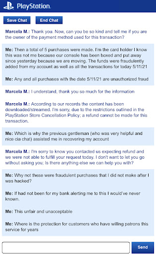 Ā Ā Ā Read moreIāve been #teamplaystion my entire life.. but the customer service I received today was beyond horrible.. I spent hours trying to get a refund⦠when I called PlayStation customer service number the AUTOMATED VOICE said to call during normal business hours of Monday thru Friday 8am-7pm something of that sortā¦. From 8am to 4pm today (FRIDAY) I called every 30 minutes⦠the and timing was correct on my end however SONY PLAYSTATION FAILED THEIR LOYAL SUPPORTERS TODAY⦠it is extremely to talk to a human being. The automated voice is even worse itās constantly sends you thru the same loop and will not give me a refund finally after hours of talking to a robot it put me in a line of 300 people I was appreciative of that because it was some type of progress. During the wait you have to keep your phone screen on if you leave that page or refresh you will lose your spot so have a charger and turn of your Lock Screen and be prepared to wait atleast 2 hours⦠by the time I made it number 42 I was randomly kicked out of the wait line⦠robots are not the way of the future for this company it seems as though they let go of most humans and replaced them with robots just to make even more money⦠I would recommend that they should be open 25/7 or better yet they should have a soul and bring back humans and let go of the automated systems ⦠all this because I want a refund but I can buy anything with a push of a button š„“šš.. if you look at PlayStation reviews on multiple websites you will see that they have extremely negative reviews and people are tired of the robots.. on that note I will be posting this review on every platform I can find.. I will be heard⦠I am truly discouraged and feel Microsoft may be a better decision...
