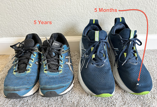 Everybody know the life of a show depends on use not just age. He argued that it's normal because I ran in them. I told him I did not run in these shoes. I told him I owned 6 pair of Asics and they all lasted 5 years, so good I even donated most of them. Thank God I kept one pair which is in the pictures below.