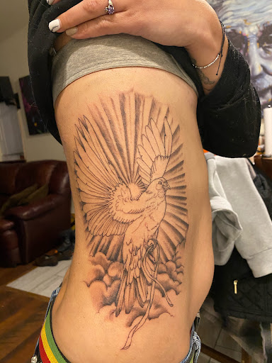 From the moment I stepped into the studio I felt comfortable and the professionalism within the shop was amazing. Even the shop dog Gordy was awesome to be around and super well behaved. Rusty took the time to understand my vision and offered valuable insights to enhance the design. His attention to detail and commitment to ensuring my satisfaction were evident throughout the process.