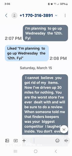 Read moreDon't leave anything here. For weeks the items they told me they were going to sell sat there. Not on sales floor and not even with my name on.them.after 2 weeks I got a text asking if a ring was mine. Also if a pink skirt was mine. I was told the owner decided not to take them after they had said yes. I live in Decatur..25 miles away. No one ever explained that this was a conditional acceptance. I told her...Kelly..how far away I lived and DO NOT GET RID OF MY ITEMS. I was hoping on the 12th I'd go up but today, the 14th, I make the drive. I'm told my ticket had no mention to hold my items. They were gone. This is the most unprofessional of all the consignment store I've been in. I'm told they will sell half opened bottles of perfume? Anything that will fit in you car that's new? I'm ok with Bible verses in a store, but when the elderly sales lady decides it's time yo msje awkward small talk because I'm the only one in the store...it gets weird. She's trying to teach me that it's winter break...most of EAST COBB is away...they go to the beach h...blah blah. " Not like in Lilburn, where people aren't as well to do, so they don't go away. You can't make this up. Unbelievable. I ha e bought a few cute things, but will Never be back. And unlike what the "saleslady" said, FINDERS KEEPERS in Decatur blows y'all away. Zero...