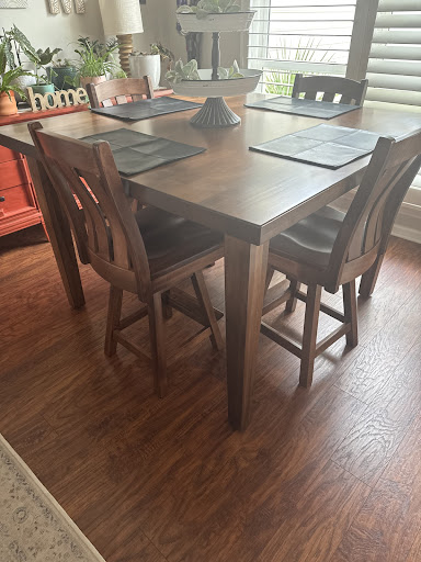 We were looking for a counter height dining table and everything we found was either outrageously expensive and not what we wanted or made of particle board and lies. We were in Anderson visiting my parents and saw a sign. We went in and the only counter height table they had was way too big and the wrong wood/color. The salesman, and I wish I had his name, asked what do you want. I told him I wanted that table but smaller, same apron, tapered leg but made of something other than butcher block. He said "sure thing, I can have it made for you". To which, I thought, this is going to be ridiculously expensive. He showed me the stains and we picked out handmade swiveling chairs. He wrote up the ticket and said I can have it all made for $3500. My jaw about hit the floor....that was 1/2, even 1/3 of some of the prices we were finding in Charlotte for stuff that was not even what we wanted. He wrote up the ticket, I paid 1/2 down and almost exactly 2 months later he called and said it's ready. My dad even went up the store to see if he could fit it in his truck to bring to me. They took the time to show it to him and then spent about 1 hour helping him wrap and load it into his truck. I was worried we would get it and it would maybe look old fashioned or not what I had pictured in my head. I could not have been more wrong. It's absolutely georgeous!!! It's beautiful and holy cow is it heavy, solid wood. I love it so much and I am so thankful we popped in there that day! The whole staff is wonderful and were so helpful. I will always go there when we need good quality wood furniture. Thank you, Wood You. You guys were awesome and it's a stunning...
