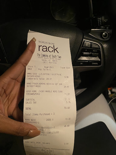 Read moreFor the first time ever, I approached by a retail worker and asked for my receipt under the pretense that I had shoplifted. I usually prefer to shop at the Sugarhouse location, because itâs the layout is better and it isnât cluttered like the Sandy location. However, I was meeting and friend to take her out to dinner for her birthday. I frequently shop at Nordstrom (and The Rack) and figured Iâd stop to get a few things while also using my rewards. I purchased a blouse, a candle and some Burberry perfume. I asked the cashier that handled my transaction where the fitting room was so that I could change into my top. After changing clothes, I proceeded to exit the store and walk to my vehicle. An employee chased me down, said that heâd noticed that I had changed clothes and that he would need to see my receipt to verify I had purchased what I was wearing. Not only was it embarrassing, it was highly inappropriate and unwarranted. I walked back into the store and asked to speak to a manager. She gave me what felt like such a disingenuous apology. I will never go into this...