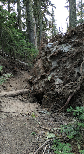 The Run off stream from Mt.Hood is very loud and swift and unpredictable and very cold due to being melted snow. Night time is see your breath cold. It's so dark that you cant see anything unless its a cloudless and moon lit night. The river stream has a way of taking ones Dog and making it disappear without a trace or an coyote or cougar took my dog one's Been sighted up there. It's a come and enjoy the roughness and beauty for a day...