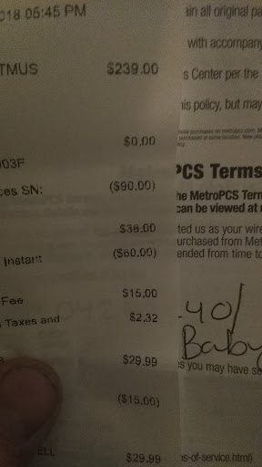Read moreIn the first two days of me being with them (my two days off) they've already lost me, and it makes me so angry, because these two days off I wasted running around doing what they told me to do to get my phone fixed, then they tell me that they're not going to reimburse me for the uber rides I had to take to do all that running around, and to top it all off, when I asked them for the customer service line so I could talk to their manager to get the situation fixed, they charged my account again so that the machine would say that I owe them money and not let me through! And keep in mind, that charge was for them to change my number and fix my phone THAT SHOULD'VE WORKED RIGHT OUT OF THE STORE! This is also a charge that i was informed "wouldn't cost me anything out of pocket." It turns out what that really means is that you have to pay the first month fee AGAIN and they reimburse you for it LATER! If I have to pay for the phone right now and do all of the steps to fix it right now, the problems and all of its remnants should be dealt with as your finishing up in the store, not "later" once you leave the store. And honestly, I can see why they do this. I'm only one person, so they can afford to just lose one customer because I am so insignificant to there bottom line: their profits. One person means nothing to them, but to those who read this, please, don't waste your time with this company. Anyone will tell you that metro PCS is the worst cellular provider of the available options, and I've just joined that list of people. I wish that I had known sooner, but if I can save at least 1 other person from this train-wreck of a company, then my time wasted with them will not have been in vain. This company is bad, and they deserve a 1 star rating. That's it, have...
