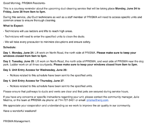 MOVE HERE!! Prisma had been my home for 2 years and I was saddened when I had to move to a different city. Prisma was my first apartment in OC and it has set the bar SO high.