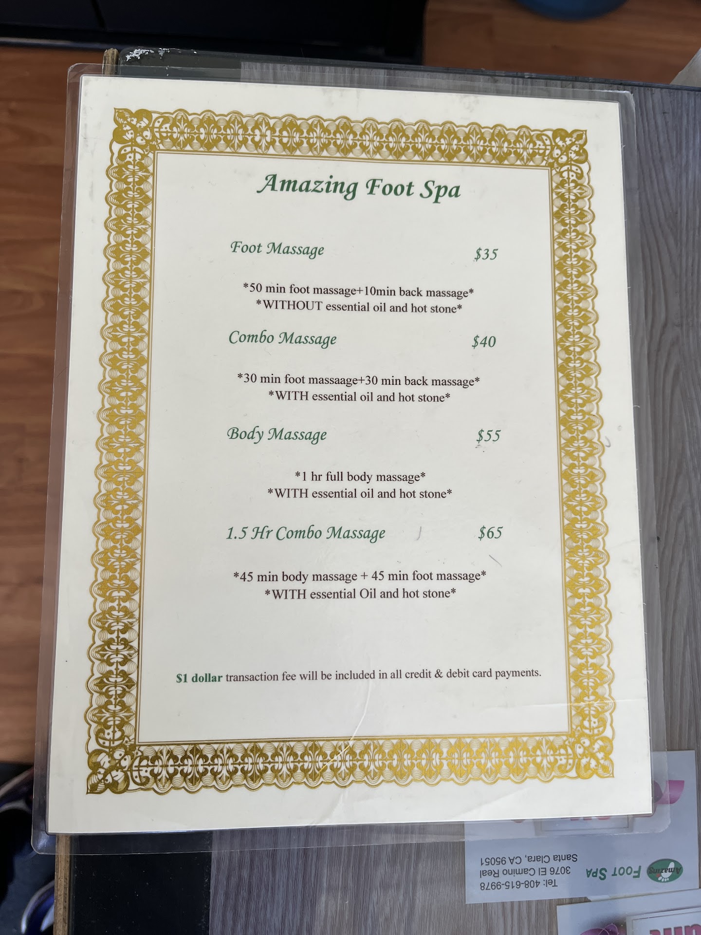 Read moreFantastic place for a massage for the price! I've paid way more at luxury spas feeling less satisfied than I have from this place. If you do a foot massage, they don't just massage your feet - they do a mini all-body massage to start with the head, shoulders and arms. I love the body massage here - I have very tense shoulders and back, so I need very hard pressure. My masseuse was very skilled at maintaining the hard pressure throughout. It can be loud sometimes when it's busy because the rooms aren't separated, but when the massage is so good it becomes white noise. My fiance and I've come here twice and we're going to keep coming back. Don't forget to...