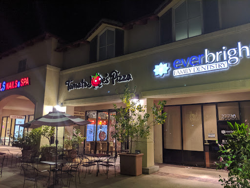 The only thing I dislike about this quaint little square on the edge of Valencia proper is the parking lot. Grocery shoppers compete with burger buyers at McDonalds and ATM withdrawers at Wells Fargo. Get thru that and the world opens at your fingertips - a donut shop, Ralphs, Wana Iguana for delectable burritos, a cool restaurant I can't remeber the name of but they have a good happy hour, a Rite Aid (without the ice cream sadly :( and a Tomato Joes Pizza. Best pizza in...