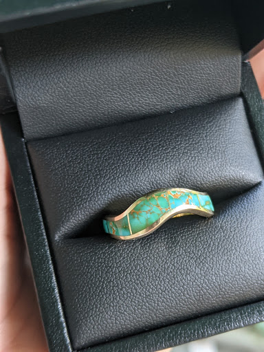 Read moreI stopped by the shop in June after looking up stores while visiting on my road trip. Knowing that the pieces are designed and created in-house is really great, and a different experience than just going to a jewelry store that's buying wholesale designer jewelry you can get anywhere. The greatest salesperson, Dawna, helped me and instantly picked up on styles that caught my eye. Dawna educated on turquoise as well. She showed me some great examples of custom work that can be done- really high quality work and I am thrilled for any bridea choosing Santa Fe Goldworks for their wedding pieces. I chose this beautiful ring that reminds me of the Earth and my road trip through New Mexico and called it my anniversary present a week early. I wouldn't find a piece like this in any other place and I wear it every day. I encourage anyone visiting to stop by and look at the incredible and unique pieces. They were doing brisk business for a reason, and Dawna was highly professional, considerate, and friendly. I hope to call for a custom...