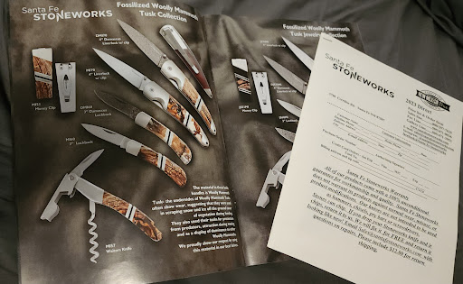 7 years ago I walked into this store with my grandparents at 16 years old. I fell in love with a Kershaw Leek with a hand-crafted mother of pearl inlay. It was gorgeous (and still is!) and i purchased it and still have it at home. Now a few weeks ago I revisited Santa Fe Stoneworks to take a look at what they have, and ask about having a repair done on my Leek. Since my last visit, a piece of the inlay had chipped off and in need of repair. Not only was I greeted warmly with a big smile and wonderful attitude, before I could even explain anything about what was wrong with my knife I was told, "just send it back in! It has a life time warranty!" in a tone that was very joyful and quite frankly its the best attitude I've ever seen for warranty work. After that I browsed around until I found something that I thought was pretty interesting. I won't say what it was specifically, but I had some custom work ordered on a new Leek and received an active duty military discount that I couldn't argue with. I told Jamie, one of the managers and one of the nicest people I've met in a long time, that I would be leaving that Friday (this was on Monday) and that if it happened to be done by then to give me a call. Long story short, I got a call Thursday afternoon saying to stop on by, and I was so impressed with work and how personable the whole experience was that I ordered another one as a gift for my brother right there the same day. I will be sending my old one in for the repair I mentioned soon. All in all, you will not find anything like their work anywhere else, and if you do, you won't have the same experience I can guarantee that. I will be a frequent customer, supporter, and suggester for...