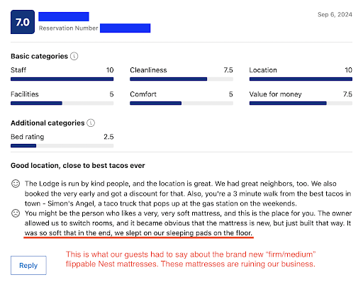 I also want to give a shout out to the incredibly devoted, hardworking staff at Nest. They did absolutely everything in their power to get me the right bed, frame it properly, and ship it to my new home... ahead of schedule! Tracy especially went above and beyond.