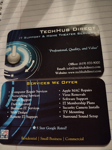 Read moreTechHub Direct is an example of a small business committed to excellence in customer service. I had some security/malware concerns with a personal laptop recently and made contact with Anthony at TechHub Direct. We set up a remote drop off (super convenient for me) we discussed the problems, he offered multiple solutions and together we tailored the best option for me. We also discussed the future of this particular device moving forward what would be best for it long-term as far as malware programs, etc. Anthony also suggested some cleaning up of the system which he did to keep it running at top capacity. In a few short days, I picked up my laptop and it runs amazing. Of note, I am a disabled senior with the usual trepidation and skepticism, especially around technology. I was beyond pleasantly surprised. I will be using Anthony and TechHub Direct for all my future...